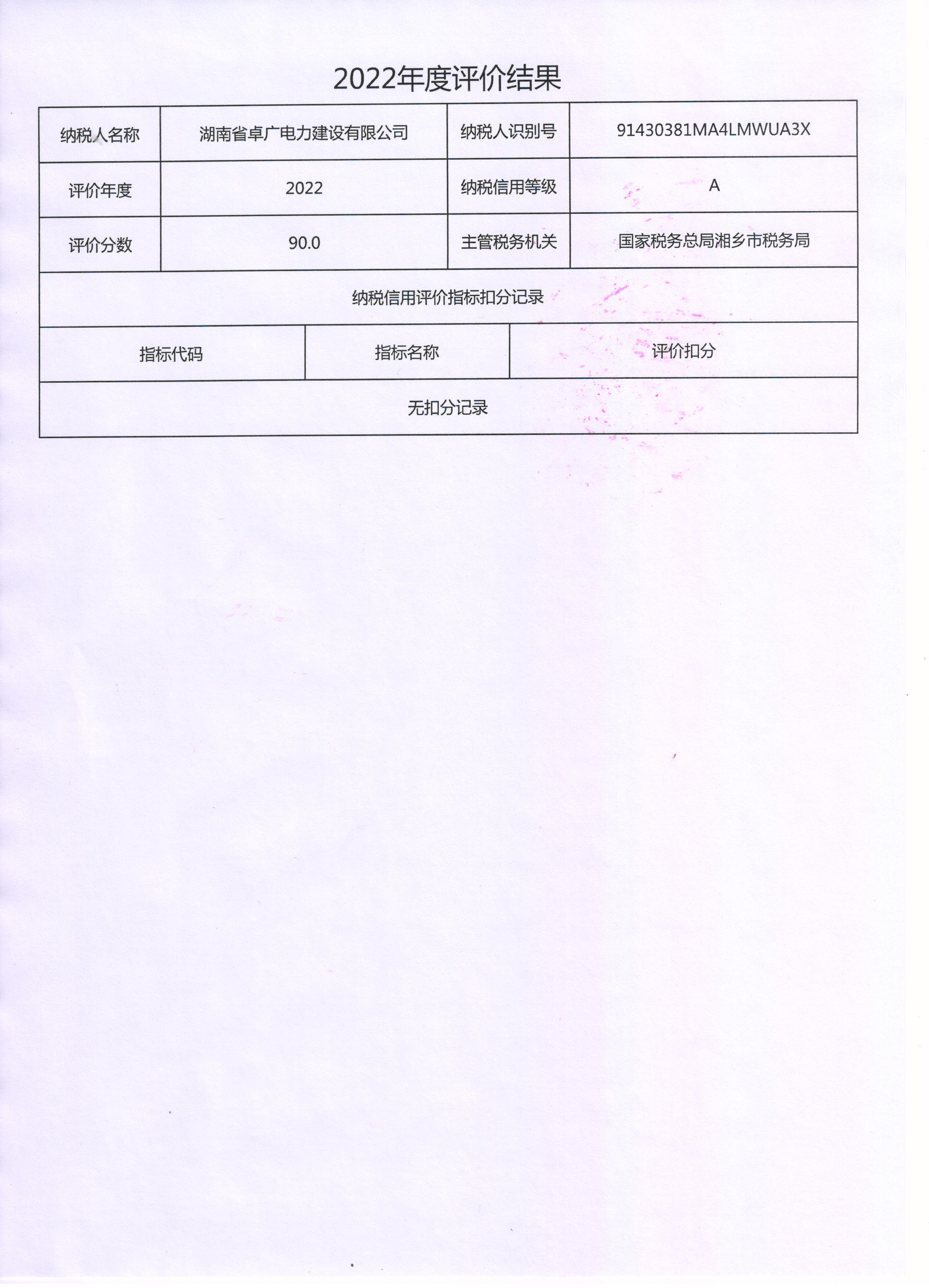 企業(yè)納稅信用等級報告: