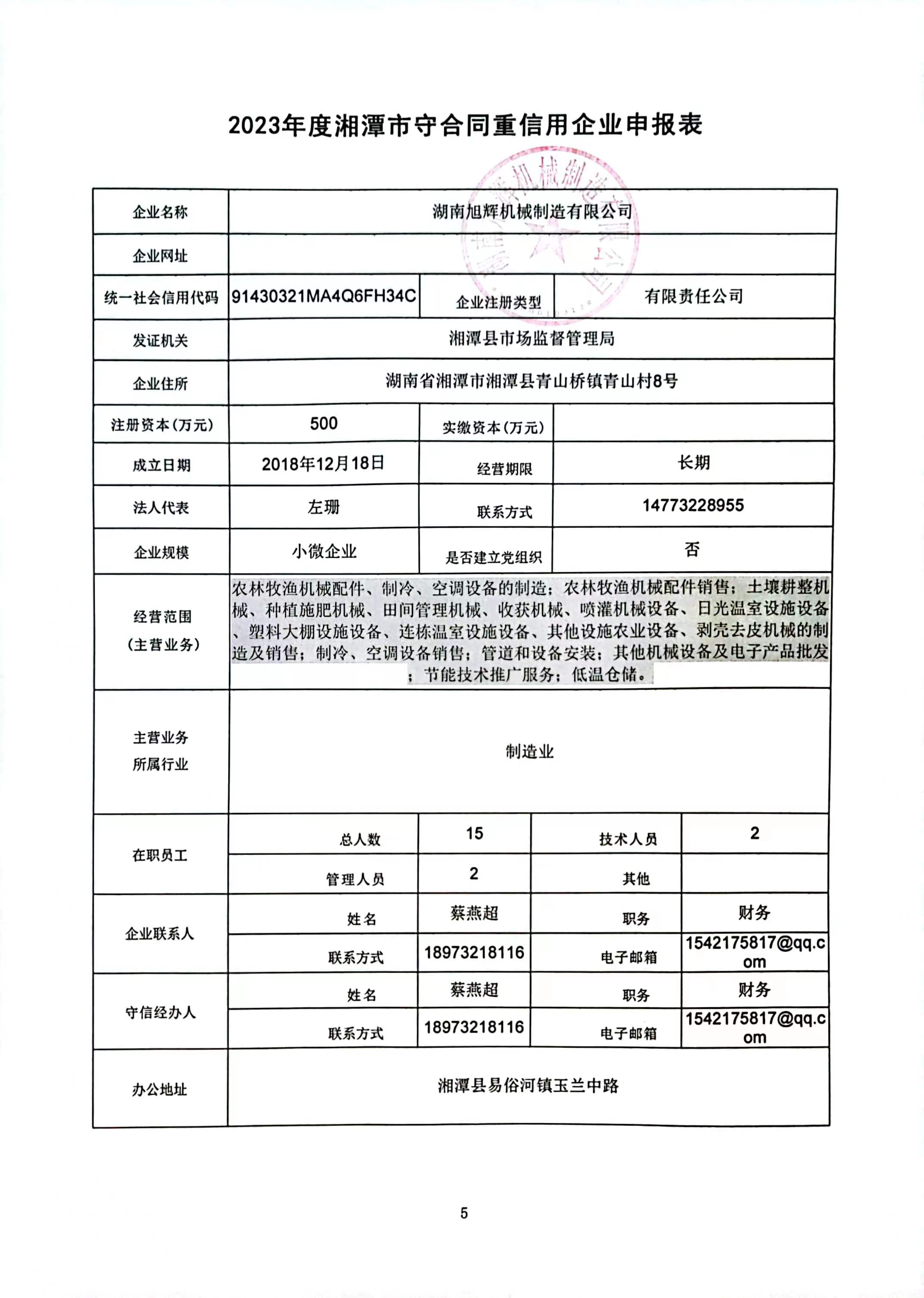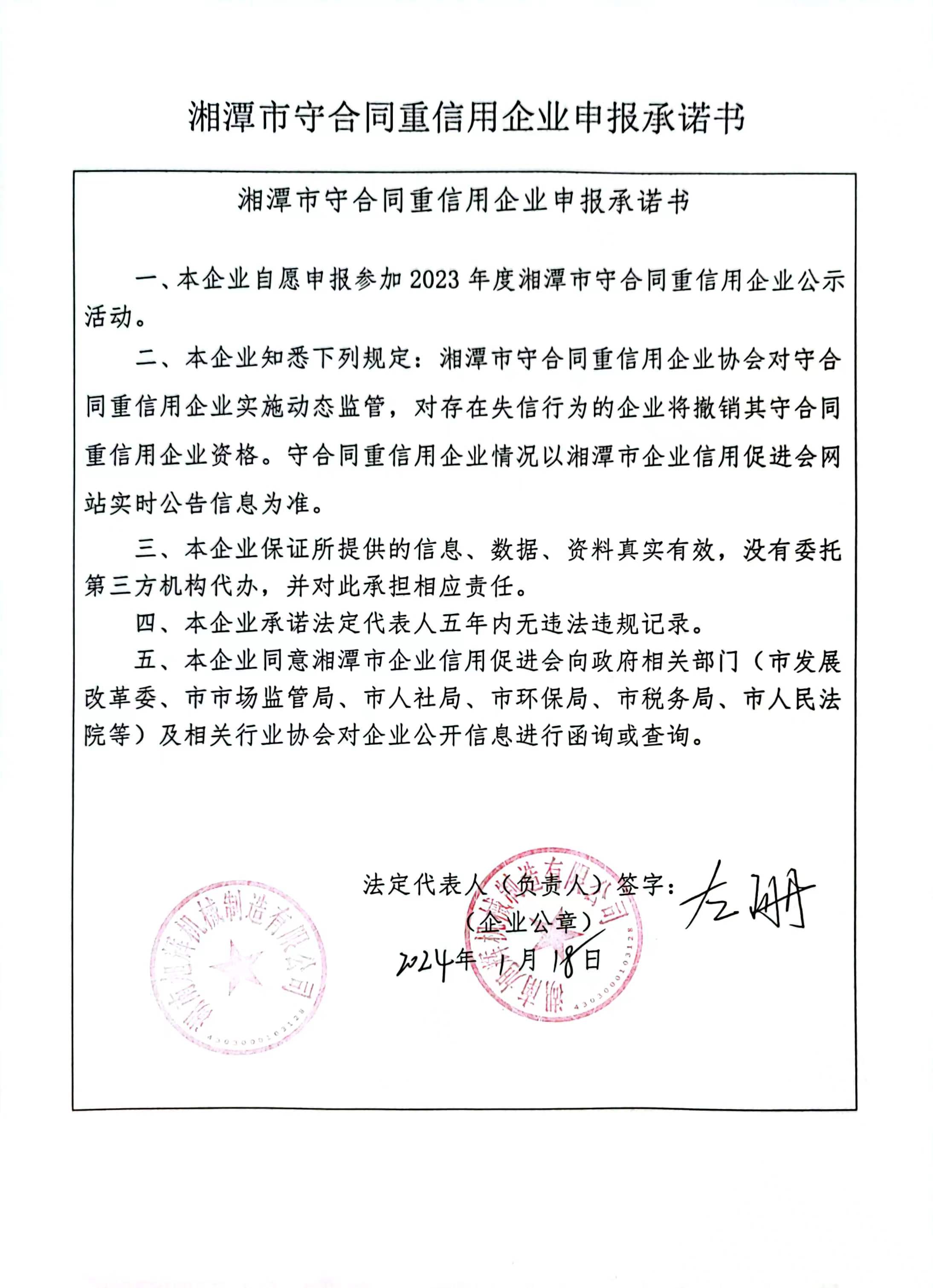 本企業(yè)根據(jù)《湘潭市守合同重信用企業(yè)申報規(guī)定》等編制 2023 年度企業(yè)信用報告書,并保證本報告書內容真實、準確、完整。