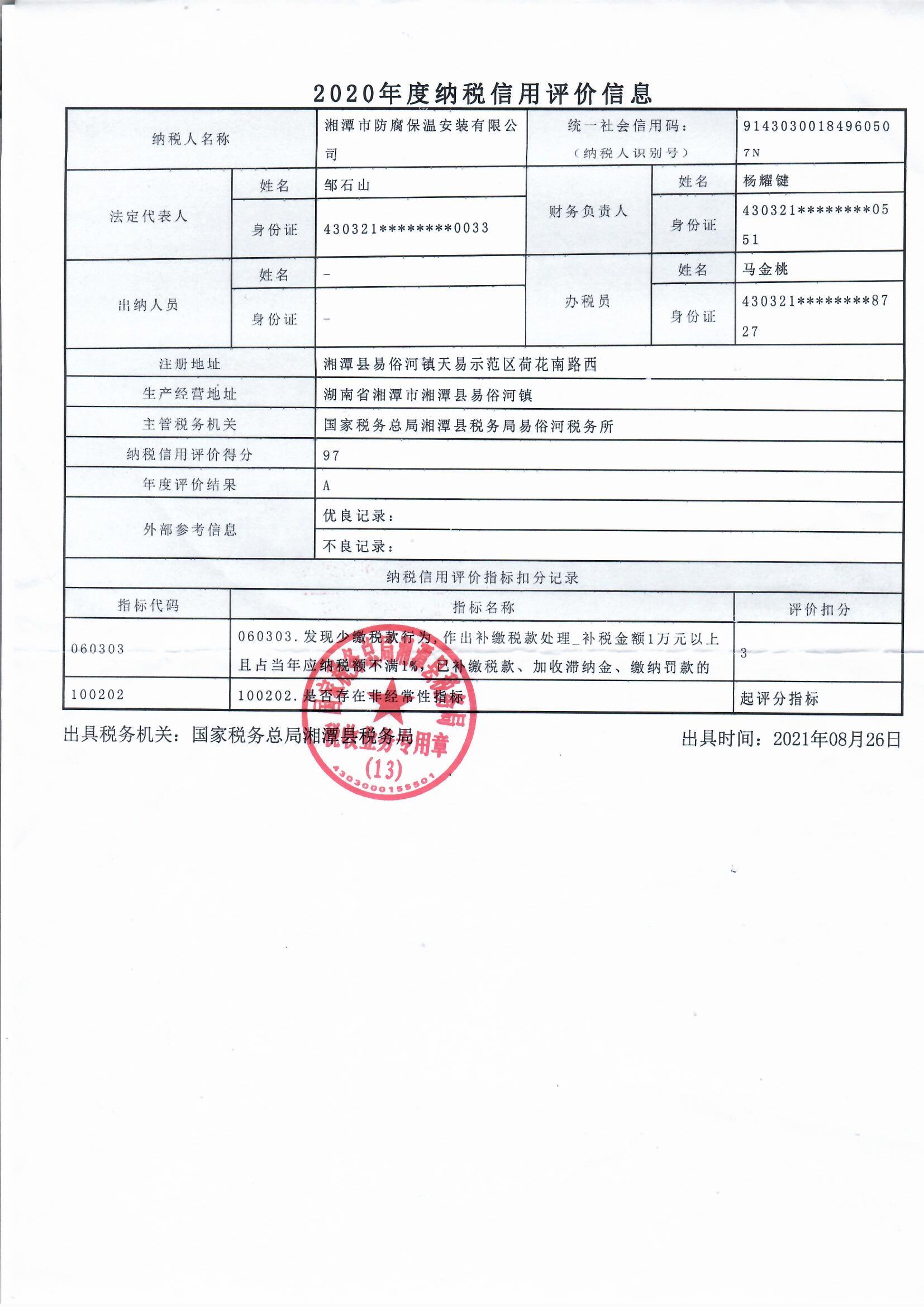 企業(yè)納稅信用等級報(bào)告: