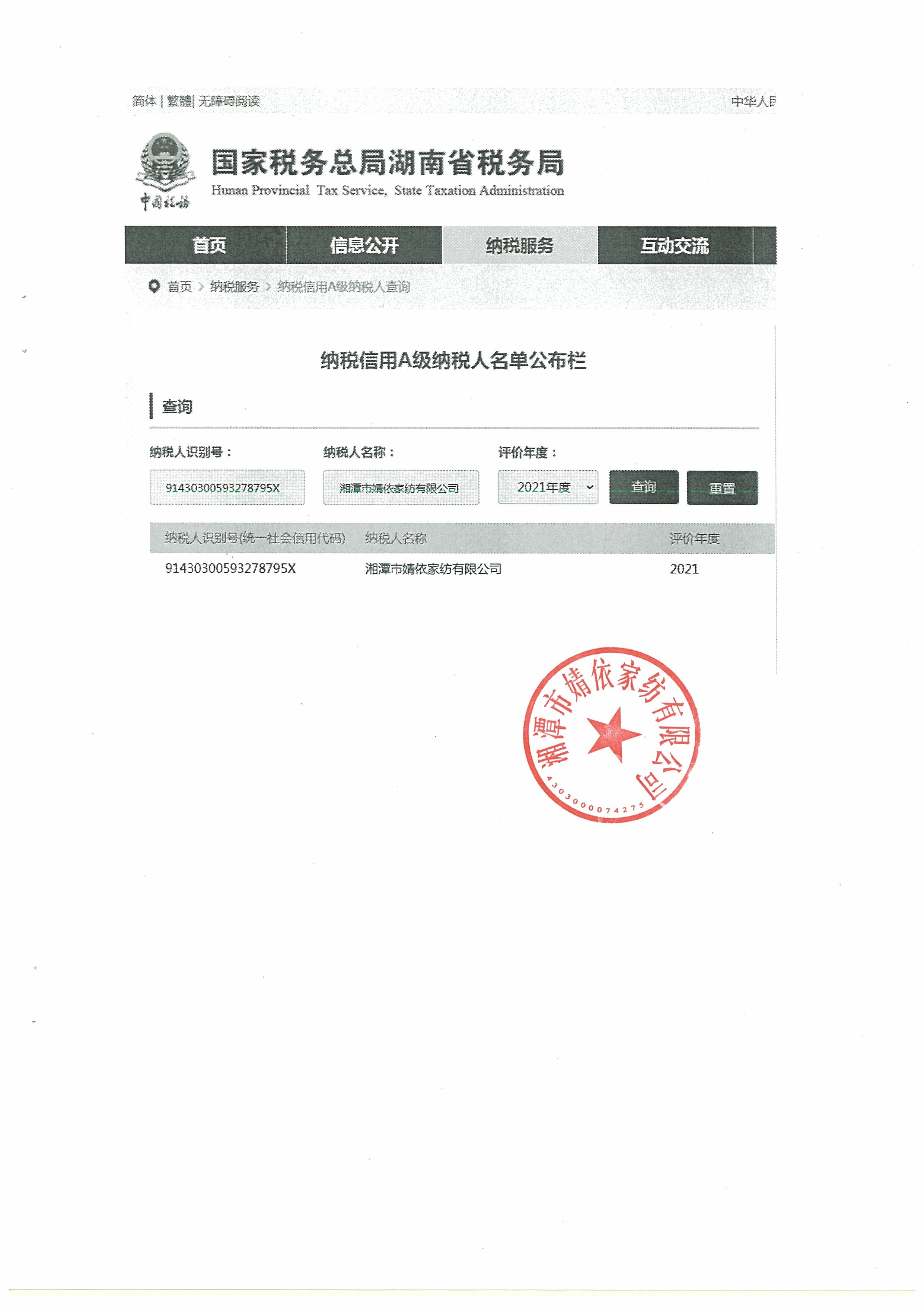 企業(yè)納稅信用等級報告: