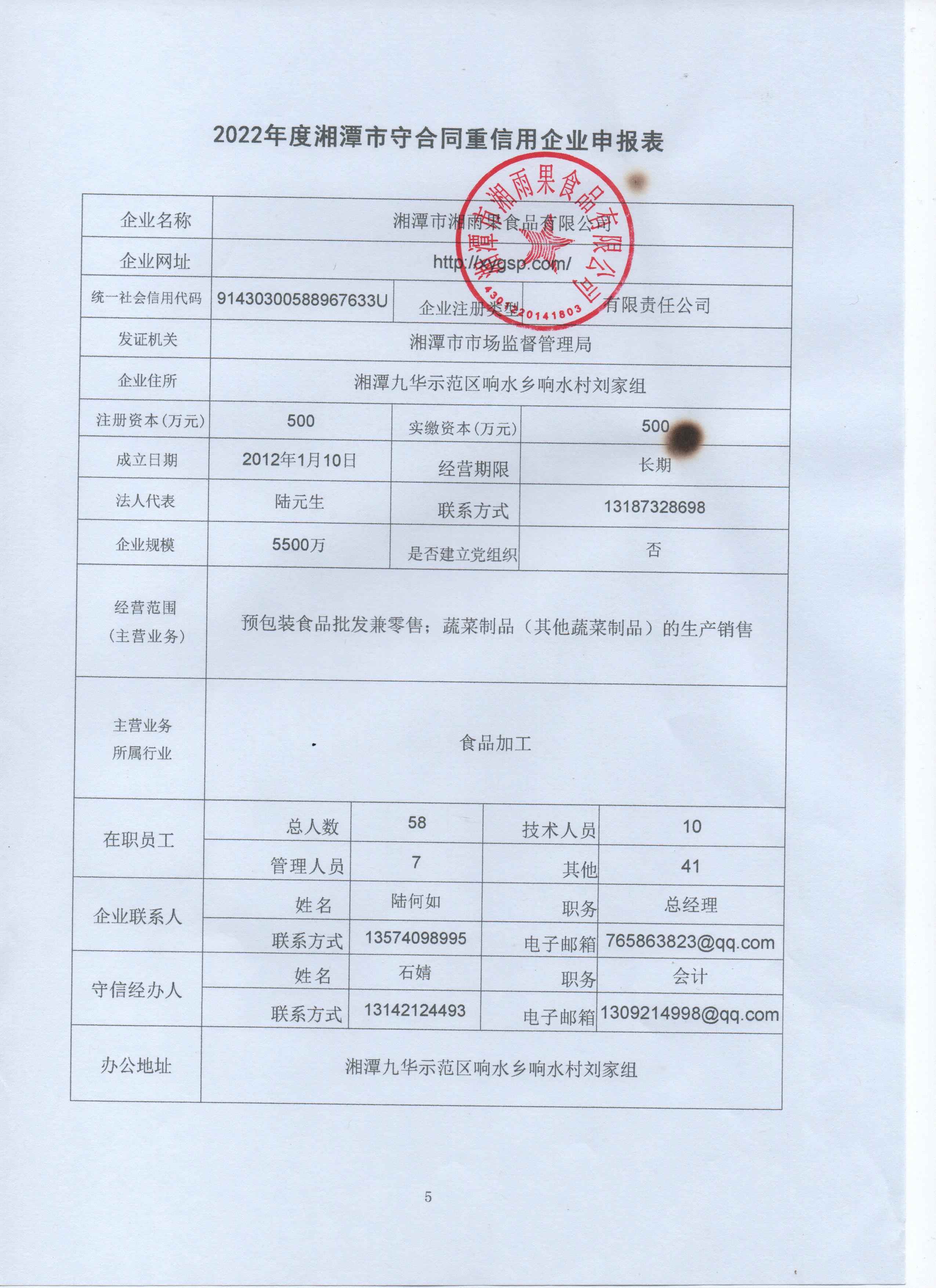 本企業(yè)根據(jù)《湘潭市守合同重信用企業(yè)申報規(guī)定》等編制 2022 年度企業(yè)信用報告書,并保證本報告書內(nèi)容真實、準確、完整。