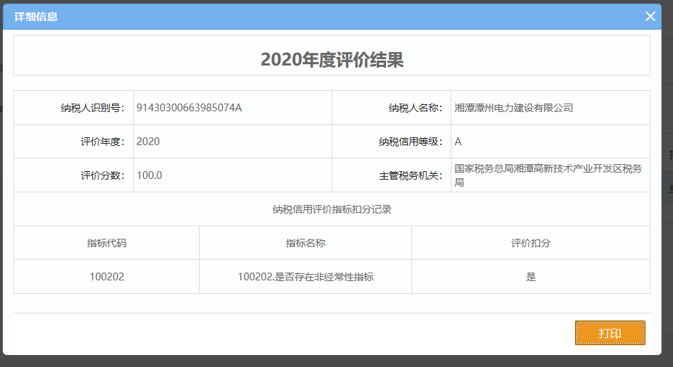 企業(yè)納稅信用等級報告: